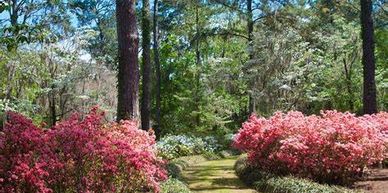 A masterpiece of floral architecture, the gardens feature a picturesque brick walkway, secret garden, reflection pool, walled garden, and hundreds of camellias and azaleas.